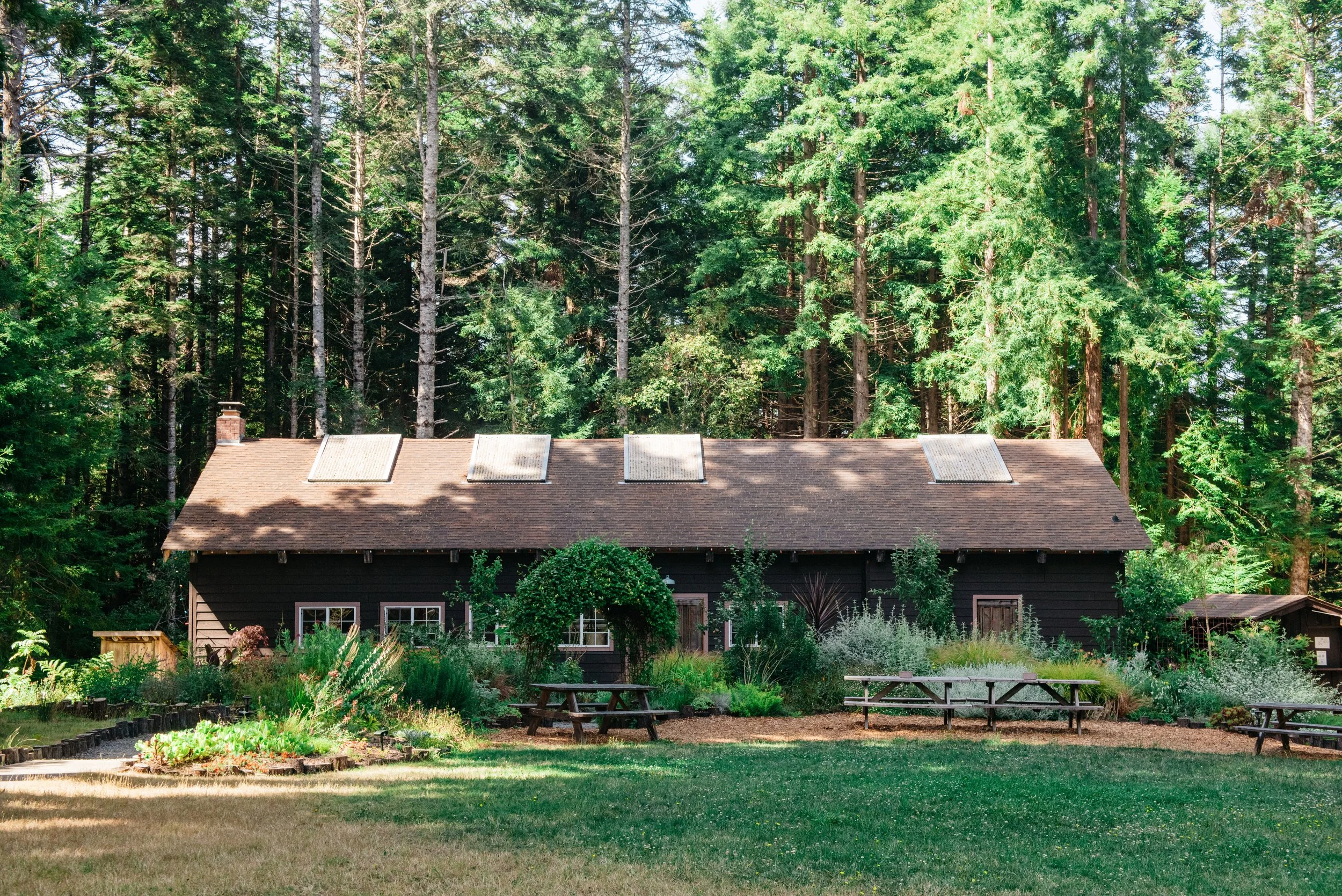 Just a few minutes drive to Oceans edge, yet nestled in the woods amongst the beautiful redwood trees. The property is absolutely stunning! I was blown away by the thoughtfulness of every detail from the landscape, to the cabins, to the common gathering spaces--the Lodge and the Sanctuary--swoon!
